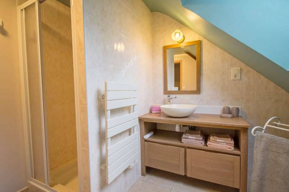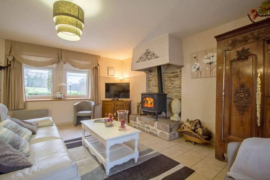 Séjour (lecteur DVD, radio CD)/coin-cuisine (poêle à bois), 3 chambres : 1 lit 2 pers. (160X200), 1 lit 2 pers. (140X190), 1 lit 1 pers. (90X190). 1 lit enfant. 2 salles d'eau, 2 wc, sèche-linge, chauffage électrique.